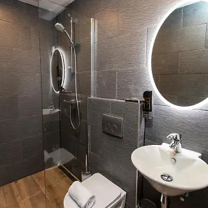 As conveniências no quarto incluem cofre pessoal, vestuário e TV de tela plana com canais via satélite, bem como banheiros privados com banheiro separado e chuveiro, juntamente com secador de cabelo e lençóis de banho. Os confortos de quarto como controle individual do ar condicionado, ferro e tábua de passar, assim como mini frigobar e máquina de fazer café, também são apresentados. Alguns de quartos espaçosos também têm vista para o átrio.