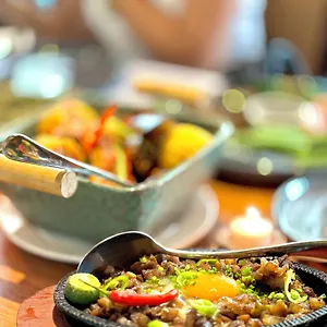 This hotel offers a buffet breakfast in the restaurant. The à la carte Horizon Cafe restaurant serves Asian cuisine.