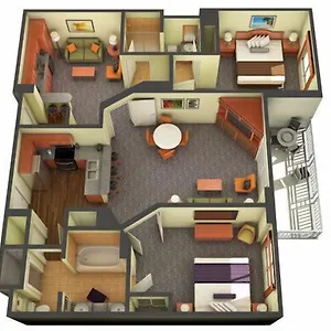 De units van het pand in Las Vegas bevatten verduisteringsgordijnen en airconditioning. Sommigen van hen omvatten een patio en een balkon, ingericht met een bank en een bureau. Gasten kunnen ook gebruik maken van een Jacuzzi en een apart toilet, samen met voorzieningen zoals een haardroger en toiletartikelen voor gasten.