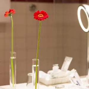 Há 101 quartos incluindo um quarto de solteiro e um quarto duplo equipados com cofre, um mini frigobar e equipamentos para chá/café . Eles também têm privada e uma sauna e casa de banho à parte.