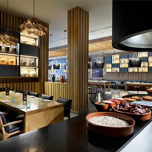 O hotel oferece pequeno-almoço buffet gratuito. O hotel também inclui restaurante a la carte. O local tem um bar com karaoke e uma televisão.