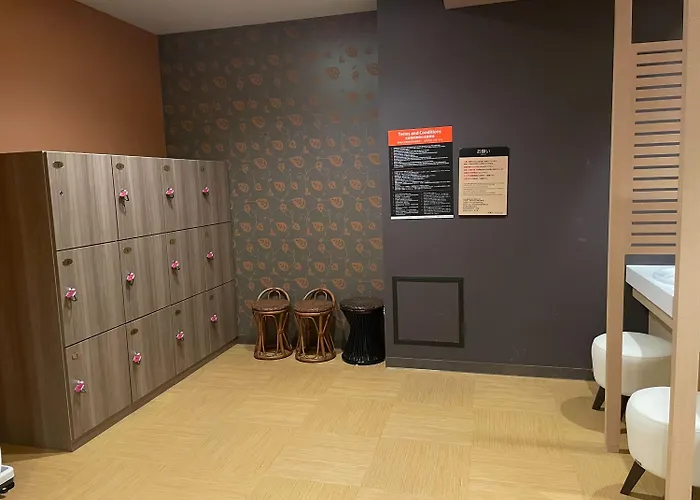 Guests can avail themselves of a hot spring public bath, sauna facilities, and locker rooms provided on the premises.